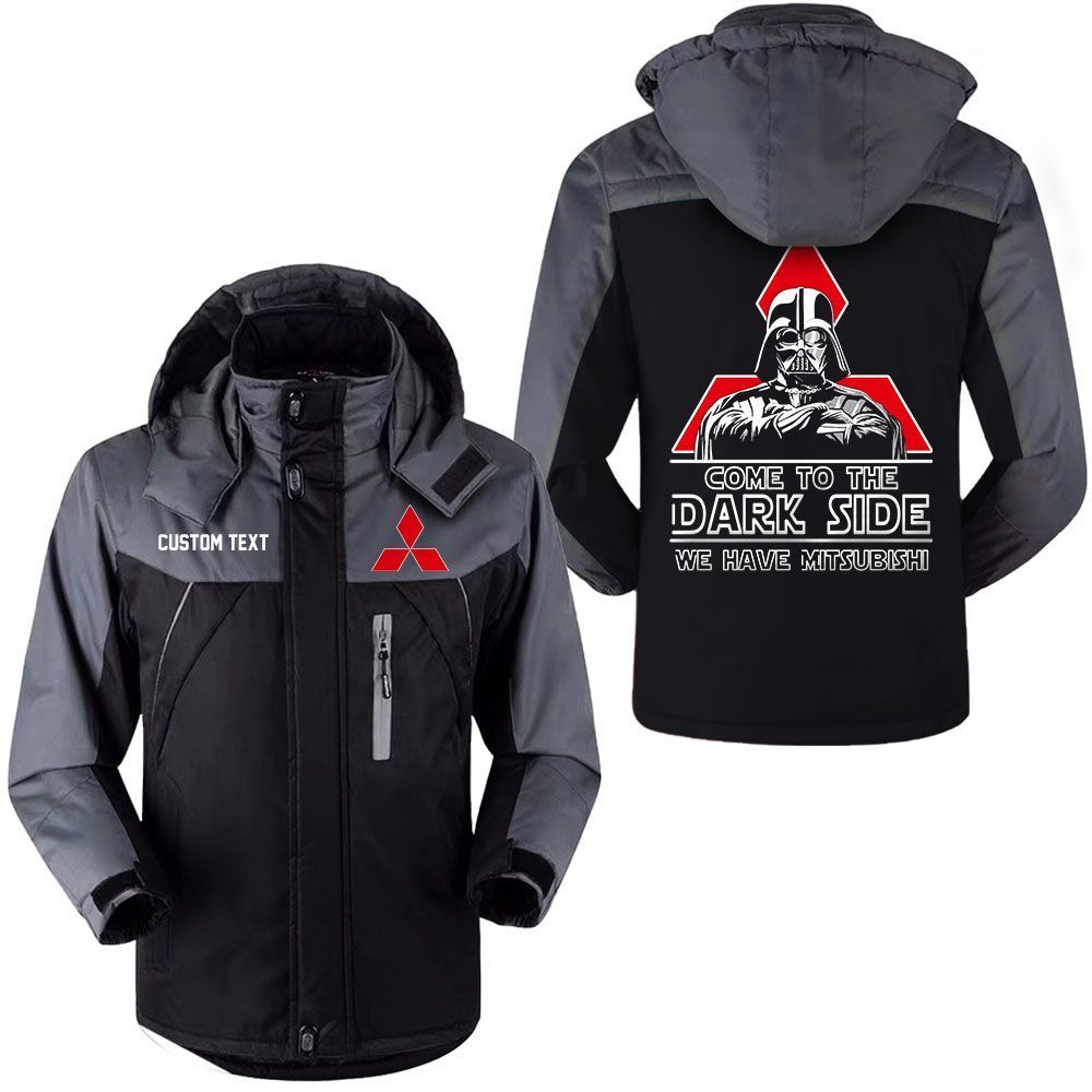 Mitsubishi Logo Custom Name Come to the Dark Side Hooded Windbreaker Ski Jacket