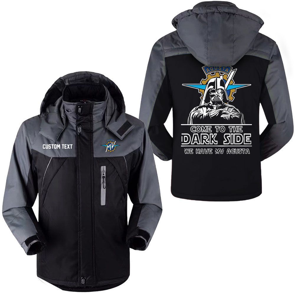 MV Agusta Logo Custom Name Come to the Dark Side Hooded Windbreaker Ski Jacket