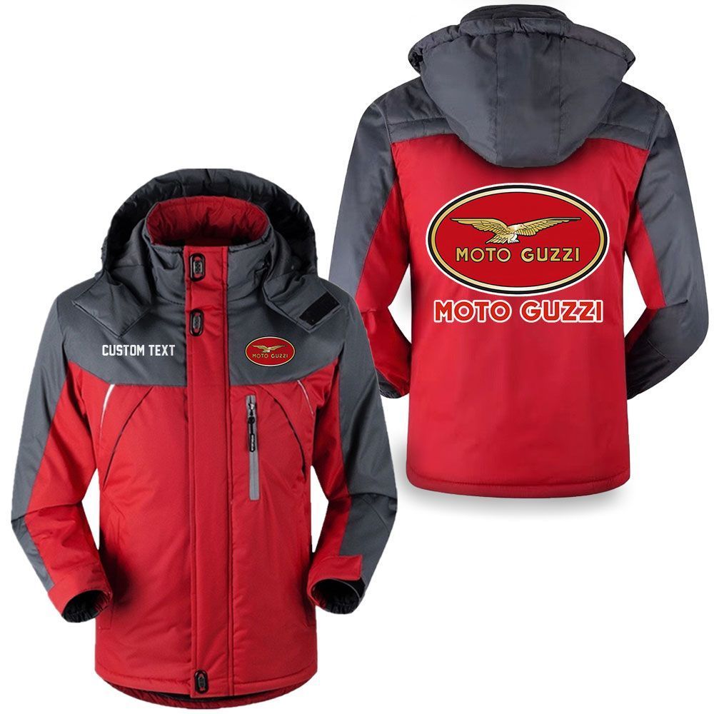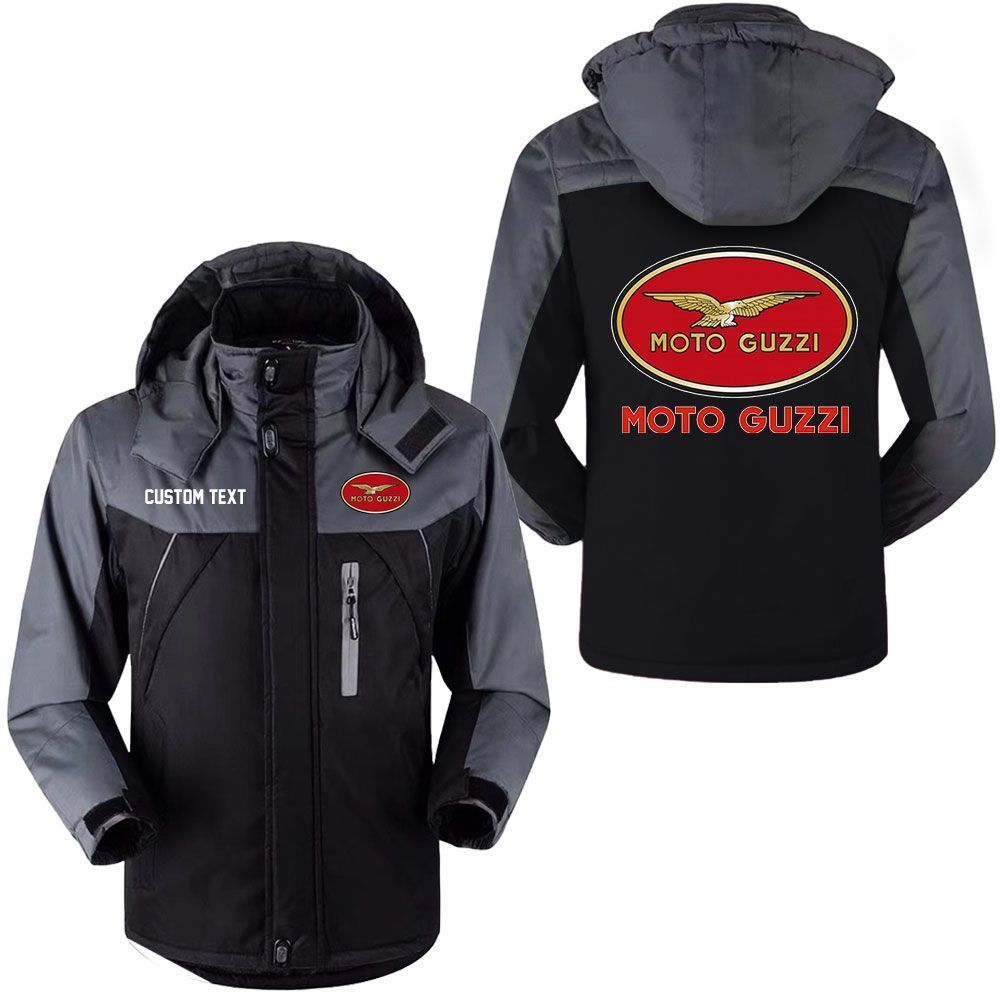 Moto Guzzi Logo Custom Name Hooded Windbreaker Ski Jacket