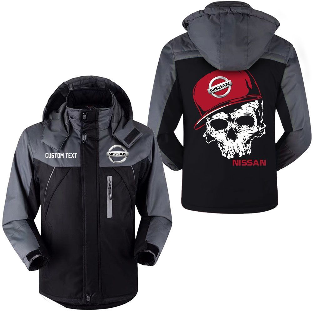 Nissan Logo Custom Name Skull Design Hooded Windbreaker Ski Jacket