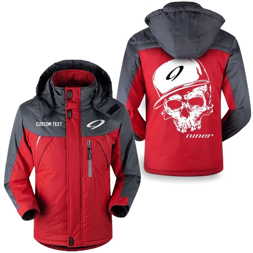 Niner Bikes Logo Custom Name Skull Design Hooded Windbreaker Ski Jacket