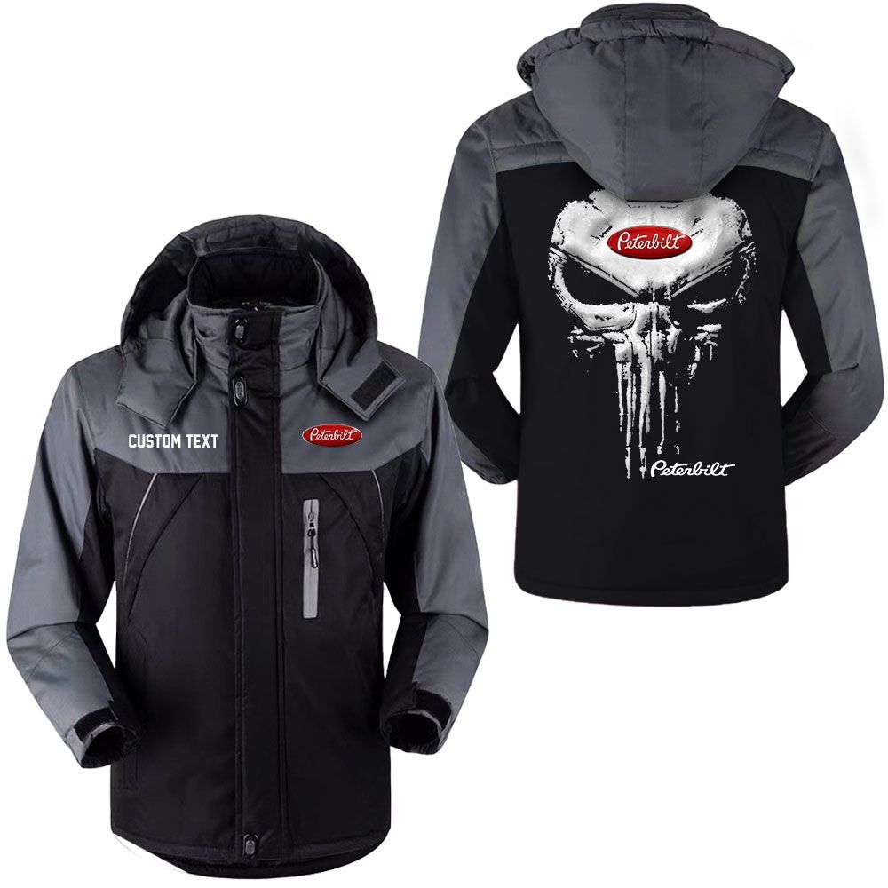 Peterbilt Logo Custom Name Skull Design Hooded Windbreaker Ski Jacket