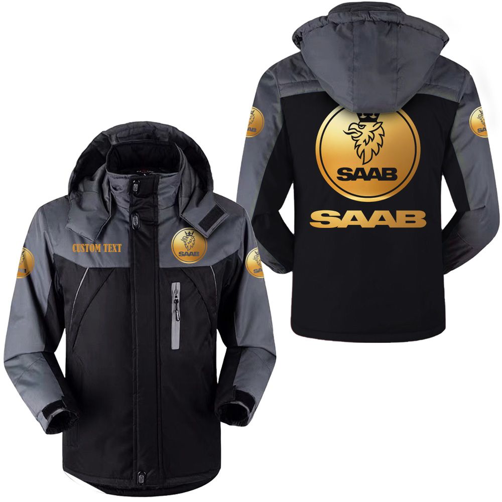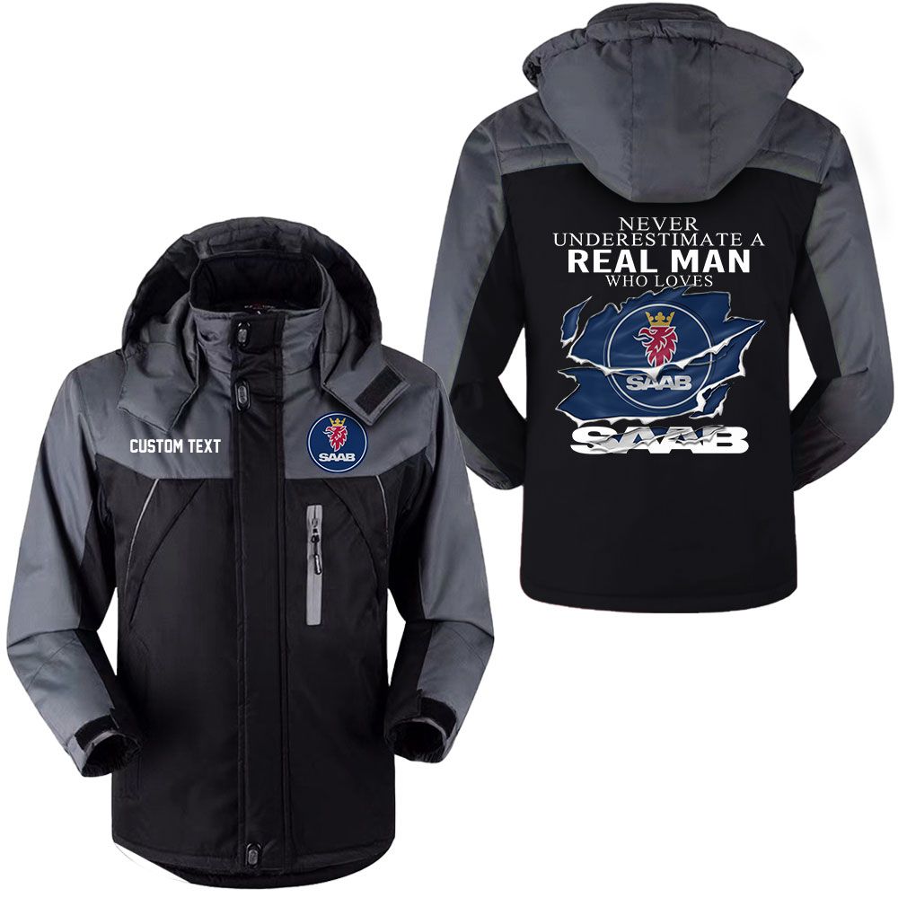 SAAB Logo Custom Name A Real Man Who Loves Hooded Windbreaker Ski Jacket