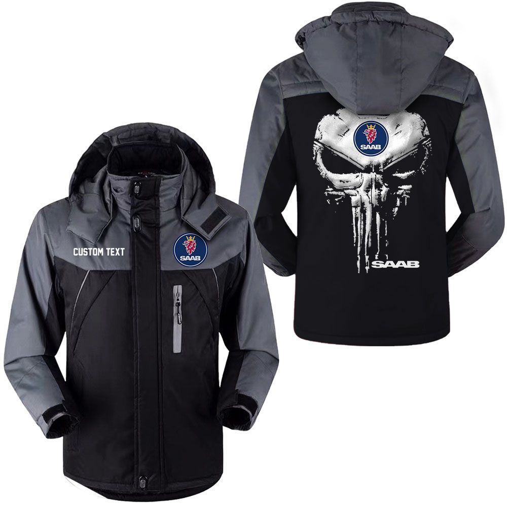 SAAB Logo Custom Name Punisher Skull Hooded Windbreaker Ski Jacket
