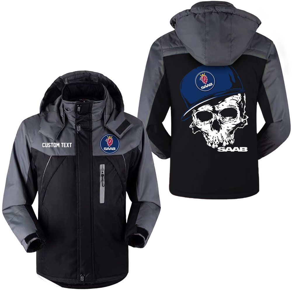 SAAB Logo Custom Name Skull Design Hooded Windbreaker Ski Jacket