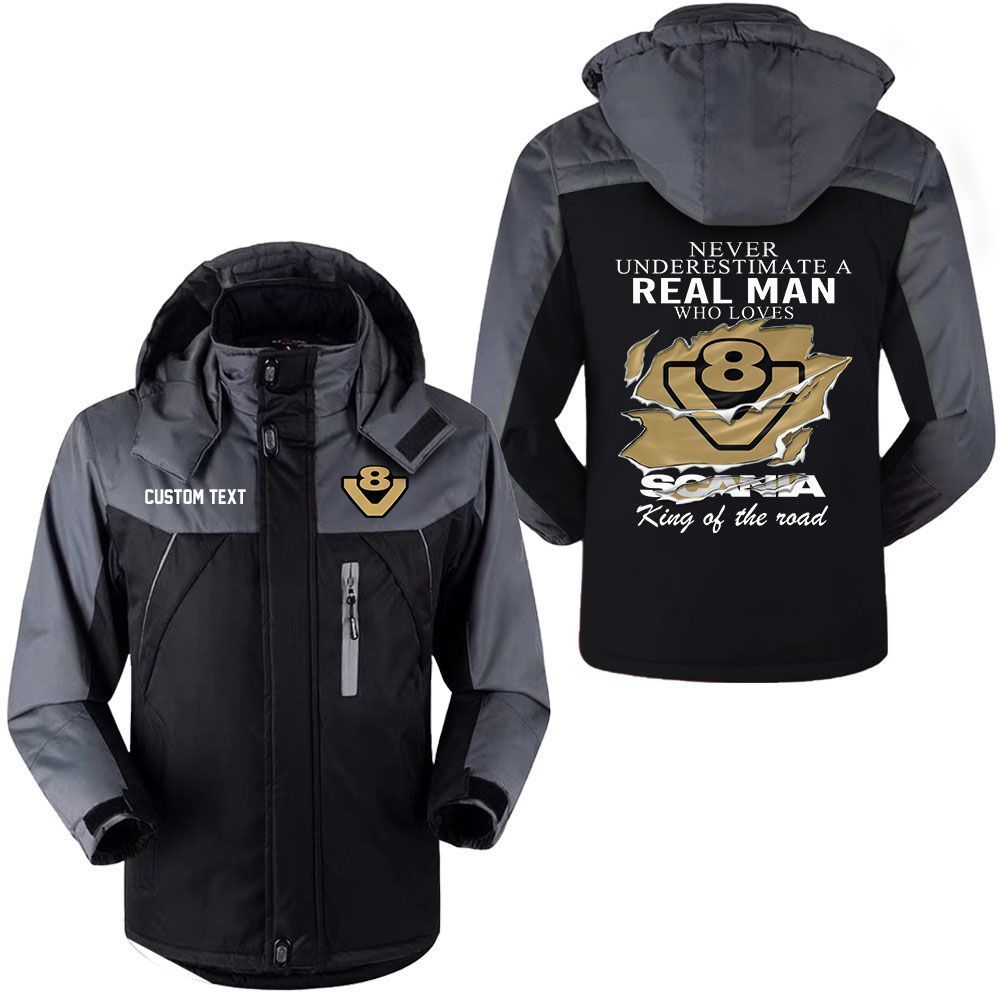 Scania V8 Logo Custom Name A Real Man Who Loves Hooded Windbreaker Ski Jacket