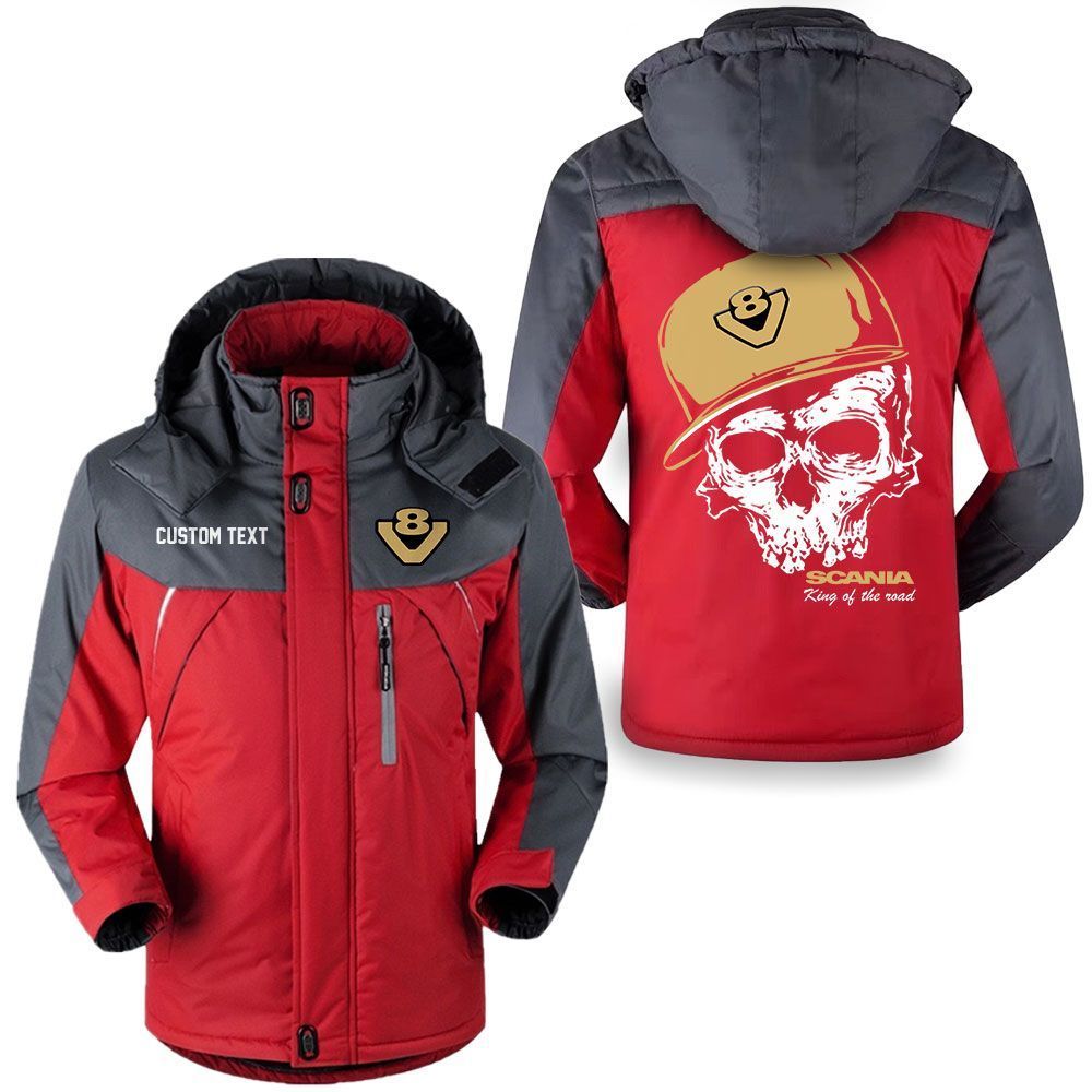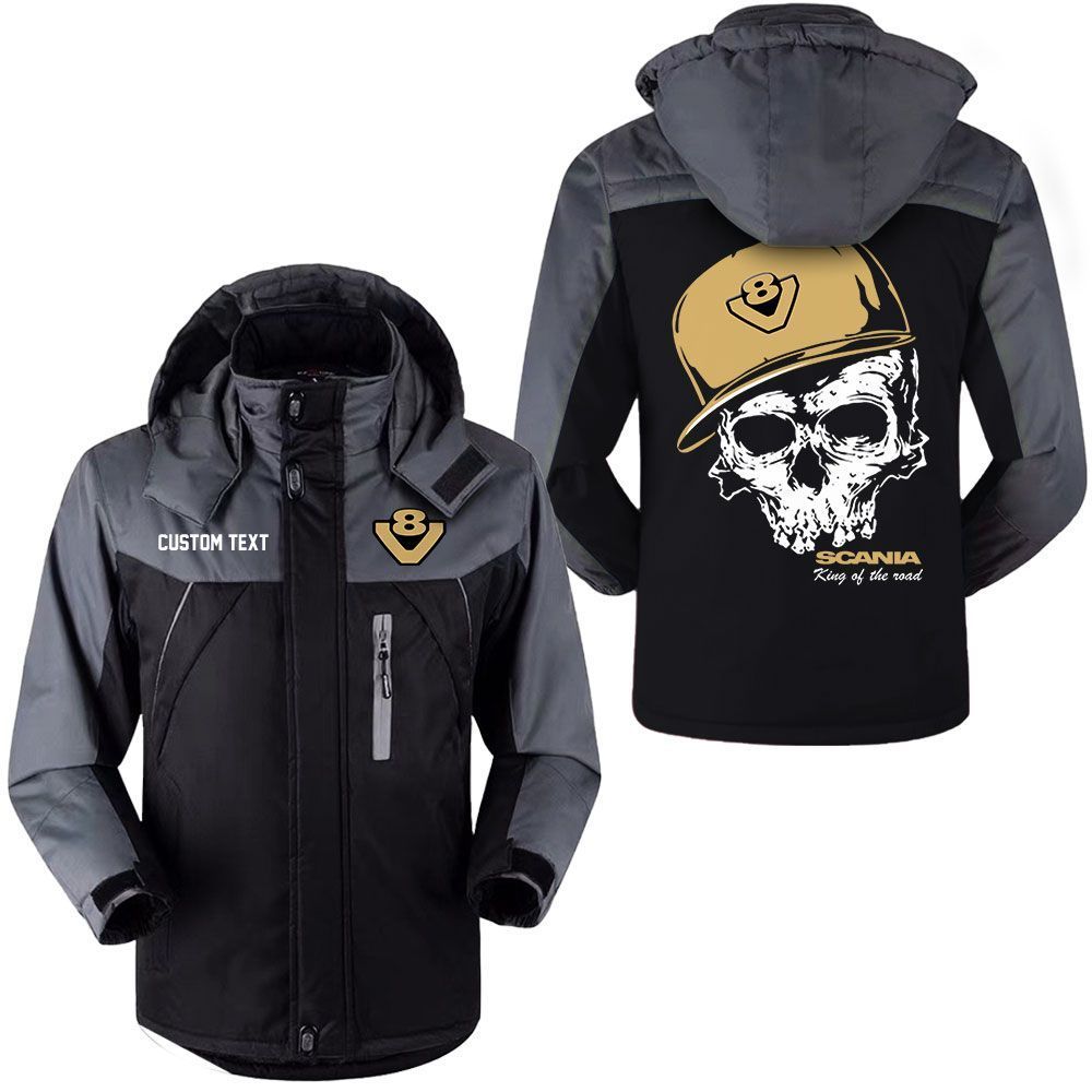 Scania V8 Logo Custom Name Skull Design Hooded Windbreaker Ski Jacket