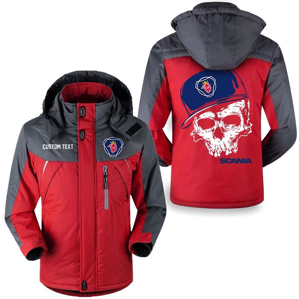 Scania Logo Custom Name Skull Design Hooded Windbreaker Ski Jacket