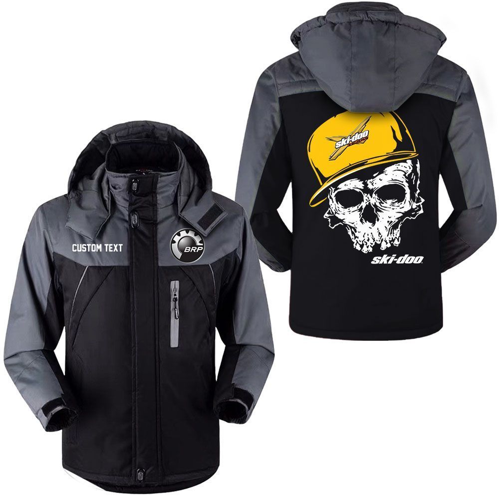 Ski Doo Logo Custom Name Skull Design Hooded Windbreaker Ski Jacket