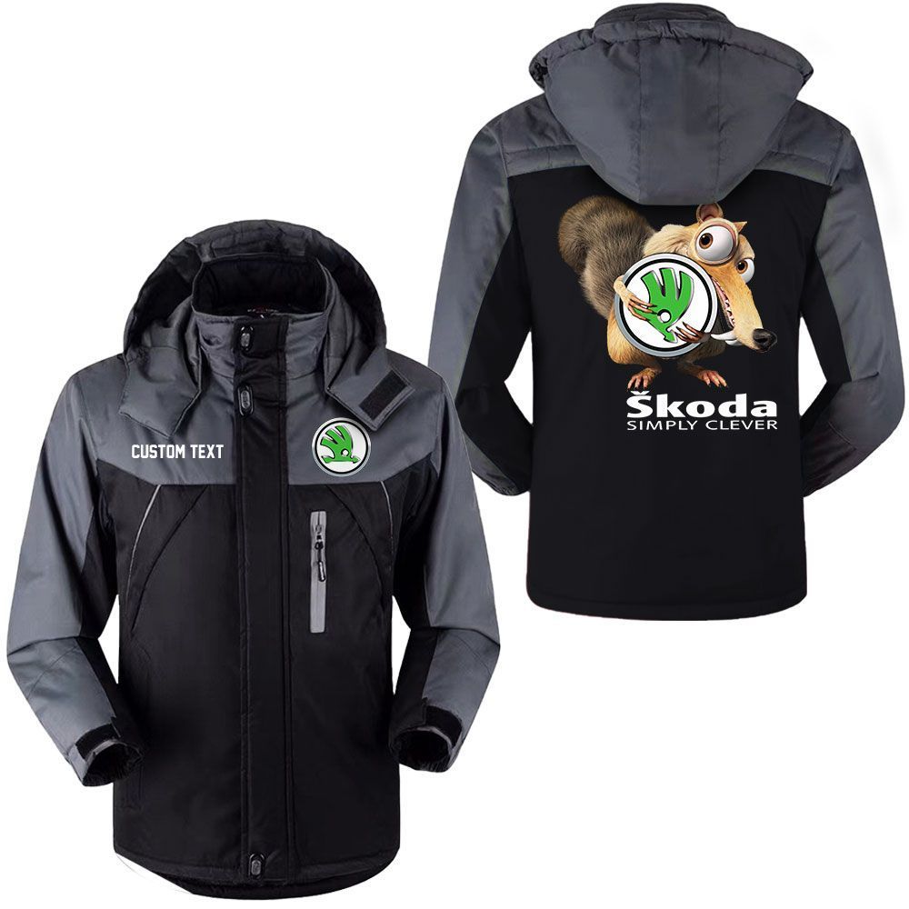 Skoda Logo Custom Name Scrat Ice Age Hooded Windbreaker Ski Jacket