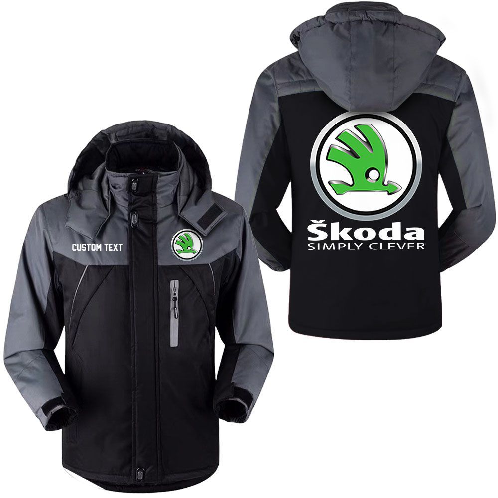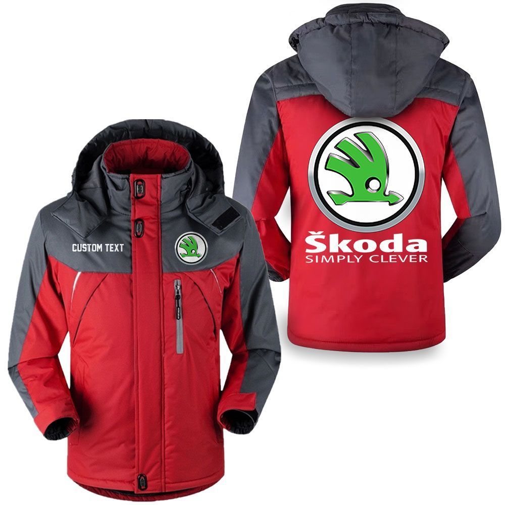 Skoda Logo Custom Name Hooded Windbreaker Ski Jacket