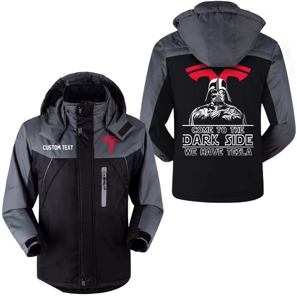 Tesla Motors Logo Custom Name Come to the Dark Side Hooded Windbreaker Ski Jacket