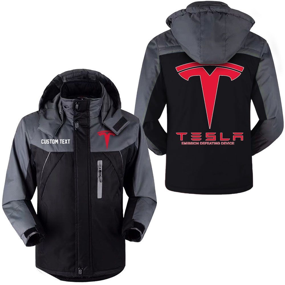 Tesla Motors Logo Custom Name Hooded Windbreaker Ski Jacket