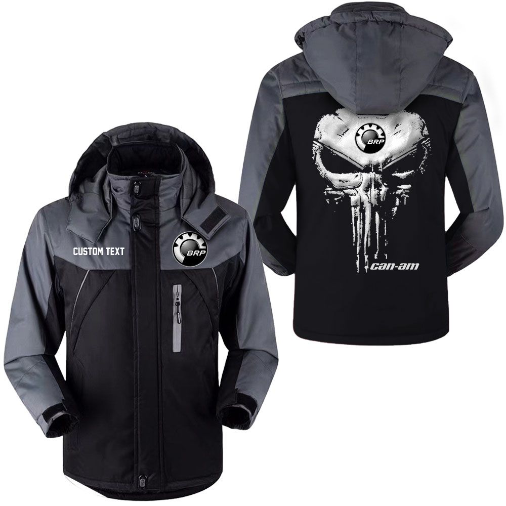 Can Am motorcycles Logo Custom Name Punisher Skull Hooded Windbreaker Ski Jacket