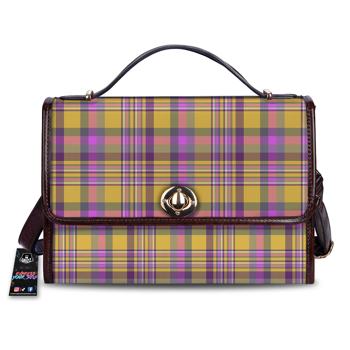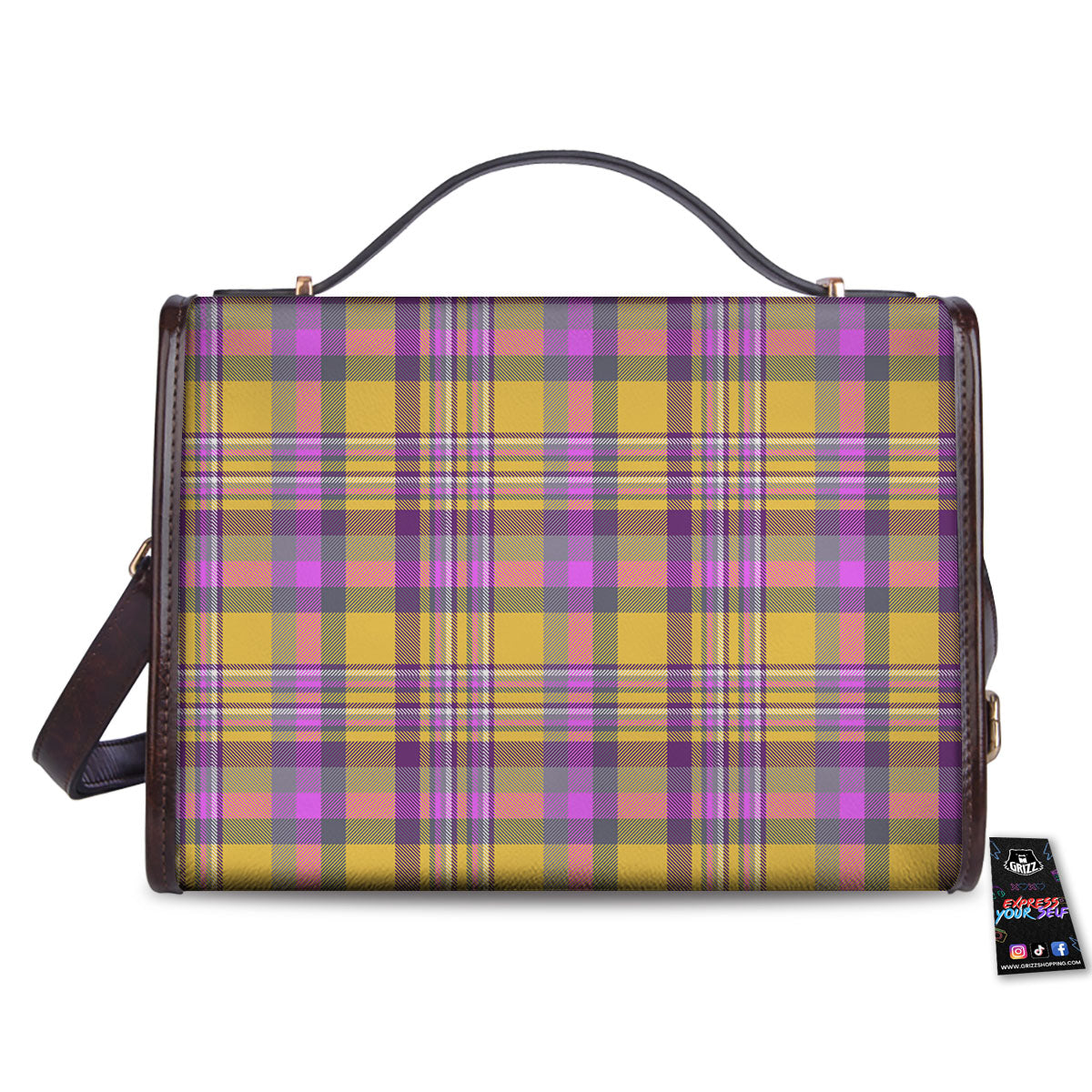 Madras Plaid Orange And Purple Print Pattern Women’s Satchel Bag