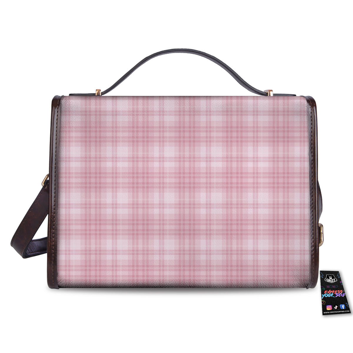 Tartan White And Pink Print Pattern Women’s Satchel Bag