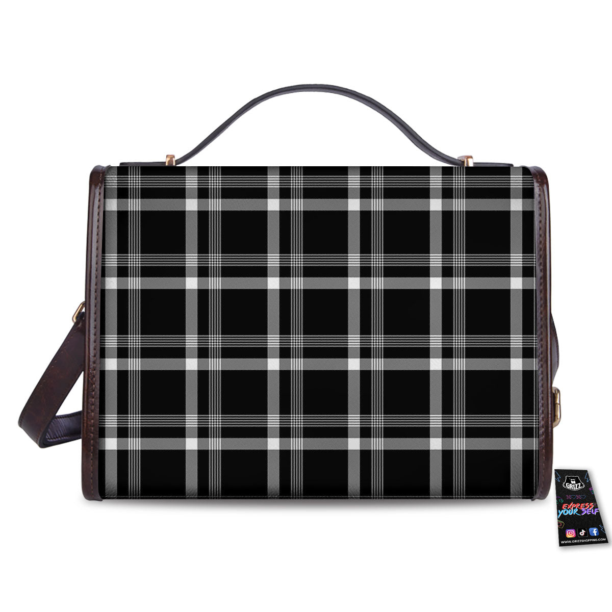 Tartan White And Black Print Pattern Women’s Satchel Bag