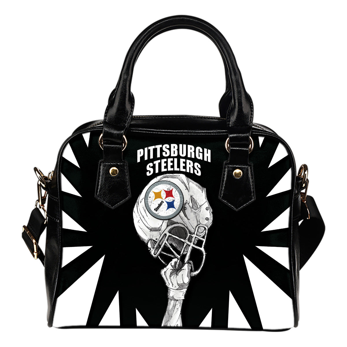 Saw Tooth Border Wonderful Hand Up Pittsburgh Steelers Shoulder Handbag