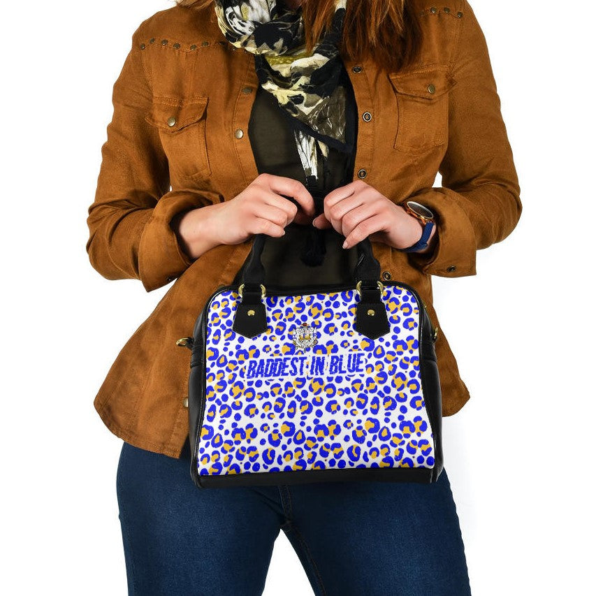 Sigma Gamma Rho Leopard Print Shoulder Handbags Baddest In Blue Style