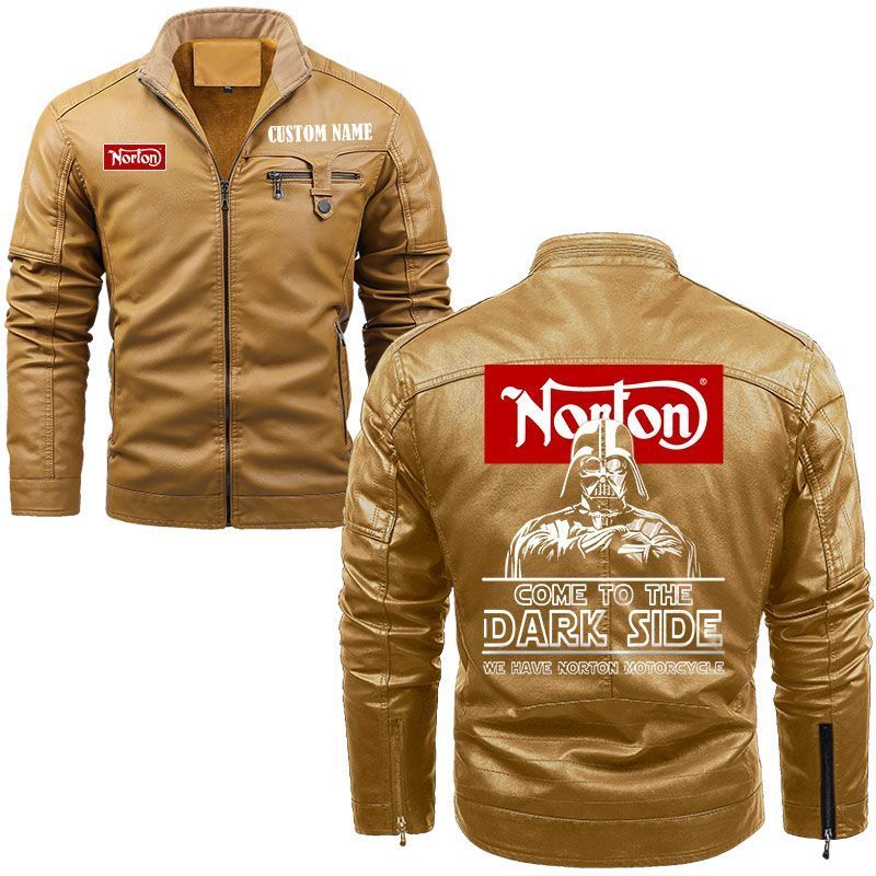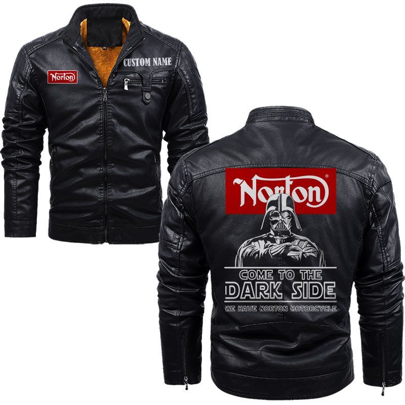 Come To The Dark Side Star War Norton Motorcycle Company Zip Pocket Fleece Leather Jacket