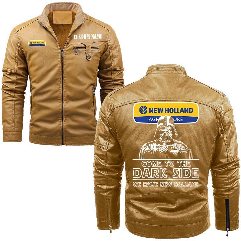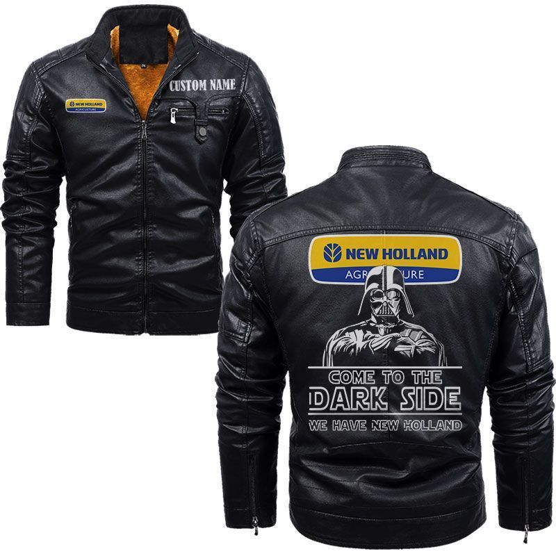 Come To The Dark Side Star War New Holland Agriculture Zip Pocket Fleece Leather Jacket