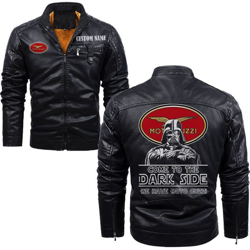 Come To The Dark Side Star War Moto Guzzi Zip Pocket Fleece Leather Jacket