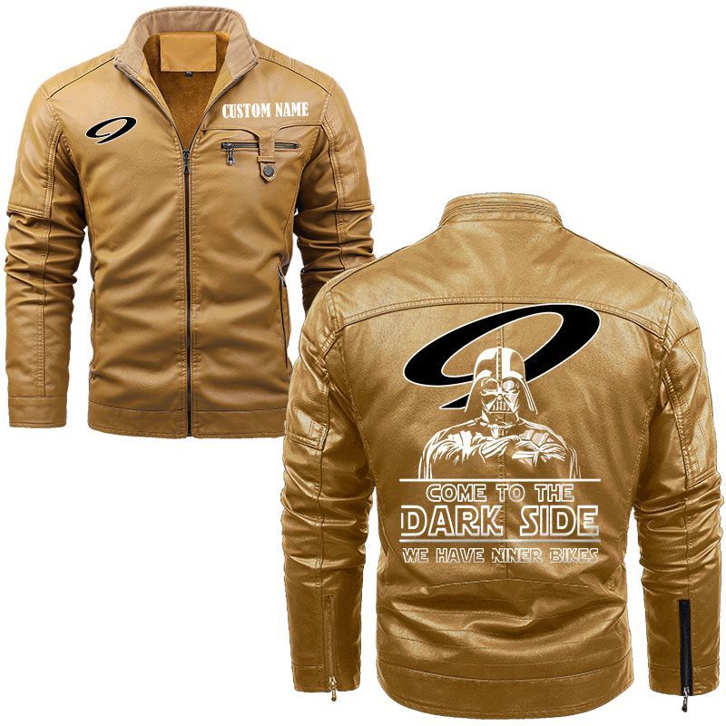 Come To The Dark Side Star War Niner Bikes Zip Pocket Fleece Leather Jacket