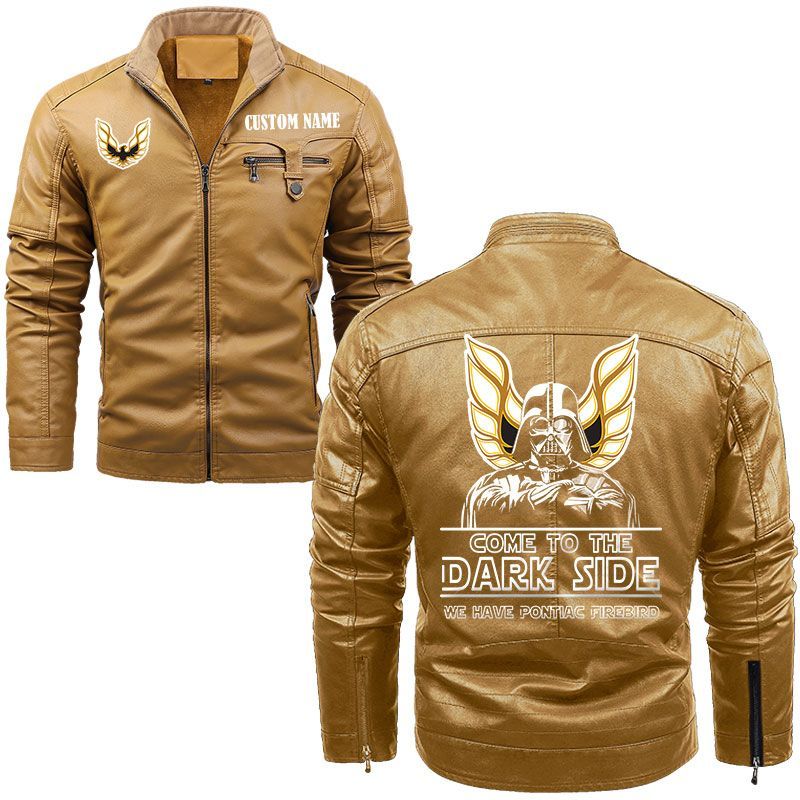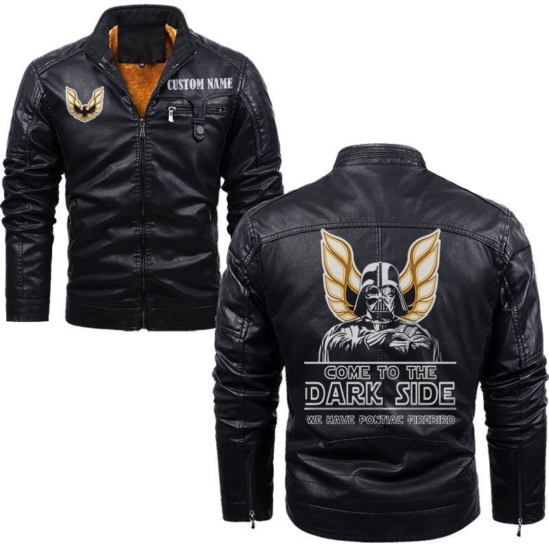 Come To The Dark Side Star War Pontiac Firebird Zip Pocket Fleece Leather Jacket