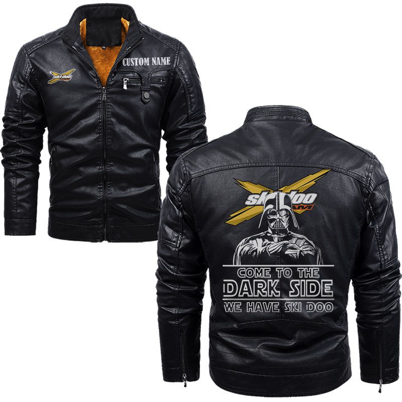 Come To The Dark Side Star War Ski Doo Zip Pocket Fleece Leather Jacket