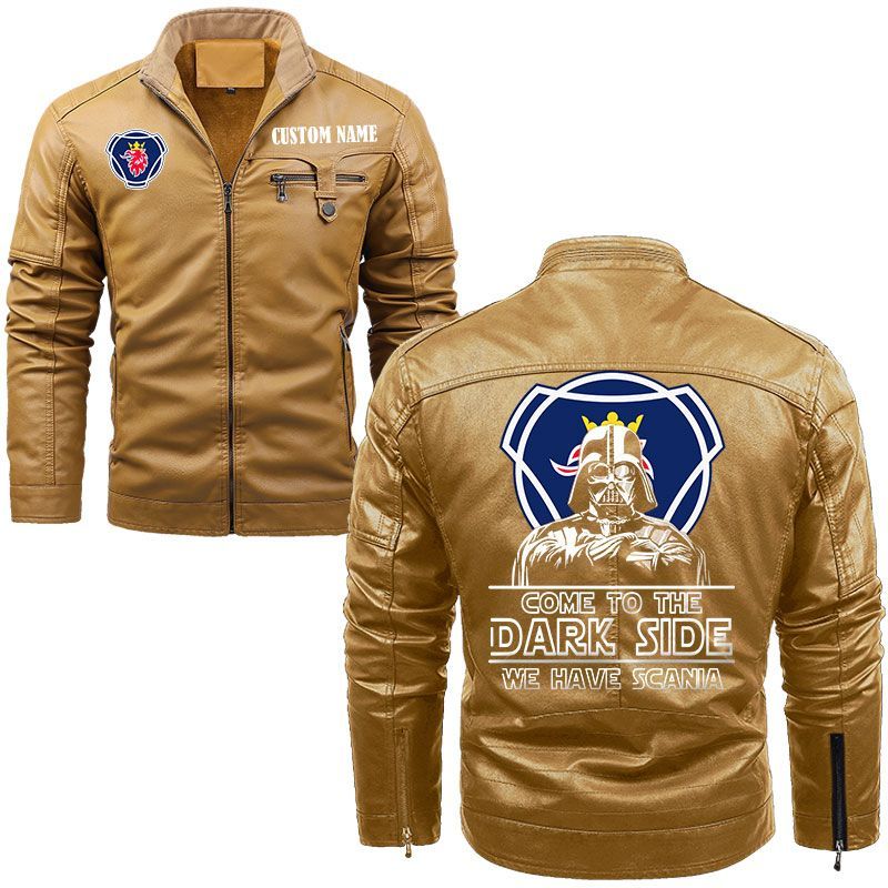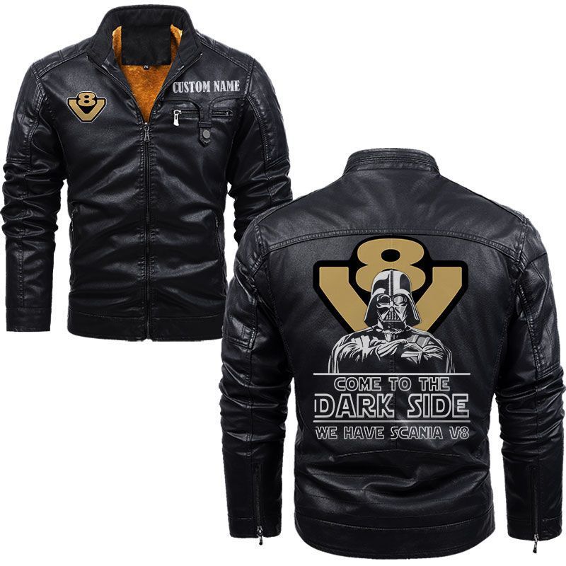 Come To The Dark Side Star War Scania V8 Zip Pocket Fleece Leather Jacket