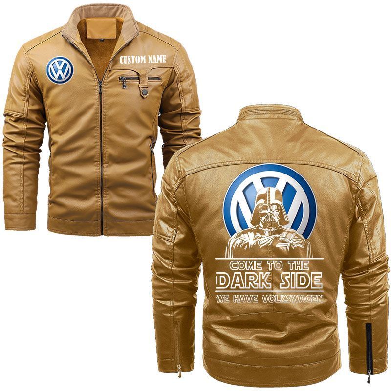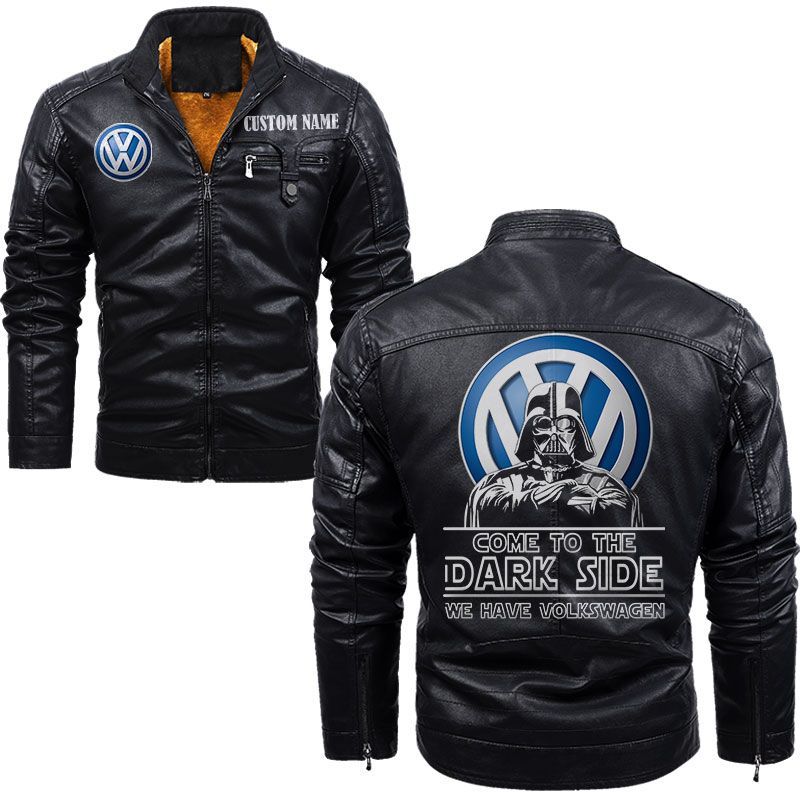 Come To The Dark Side Star War Volkswagen Group Zip Pocket Fleece Leather Jacket