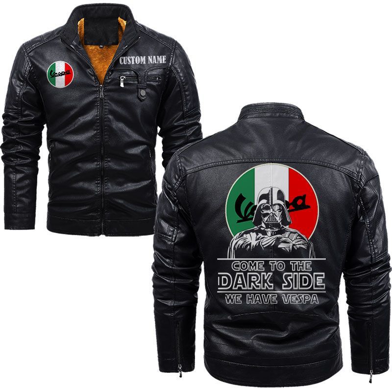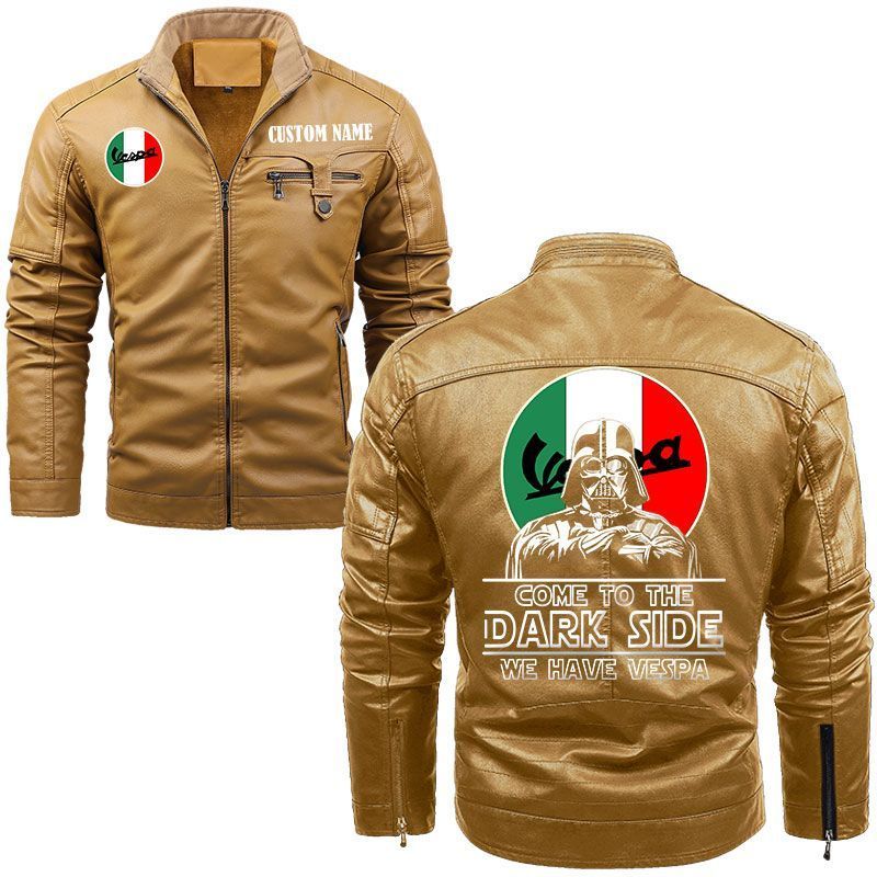 Come To The Dark Side Star War Vespa Zip Pocket Fleece Leather Jacket