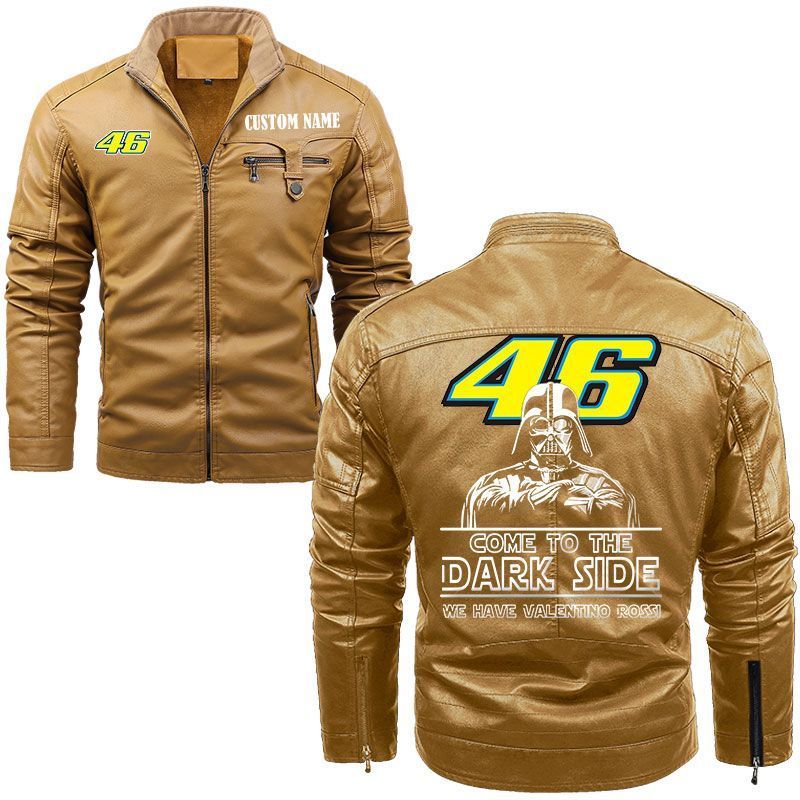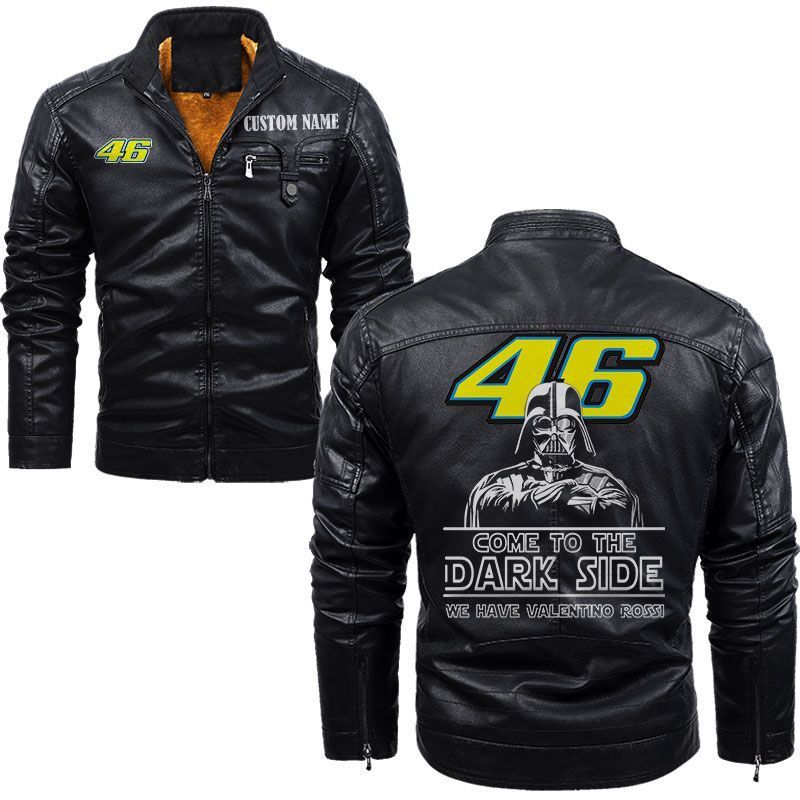Come To The Dark Side Star War Valentino Rossi 46 Zip Pocket Fleece Leather Jacket