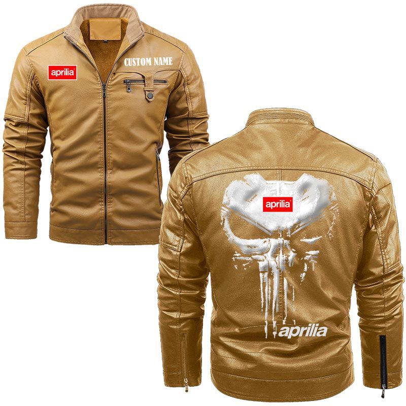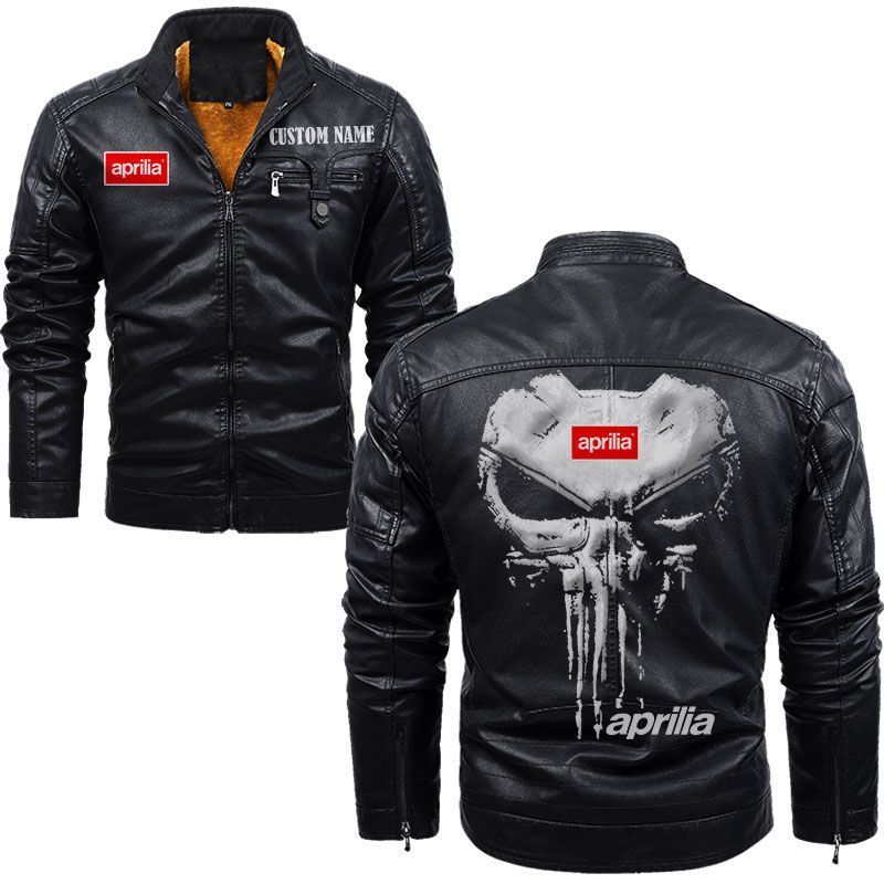 Custom Name Punisher Skull Aprilia Zip Pocket Fleece Leather Jacket