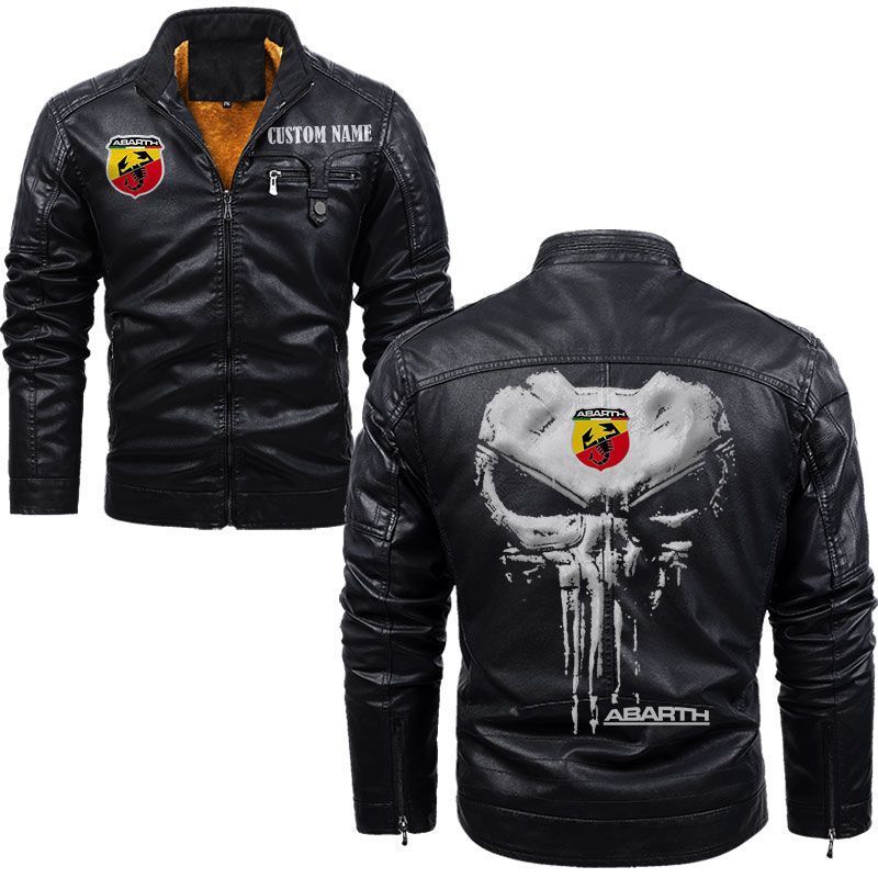 Custom Name Punisher Skull Abarth Zip Pocket Fleece Leather Jacket