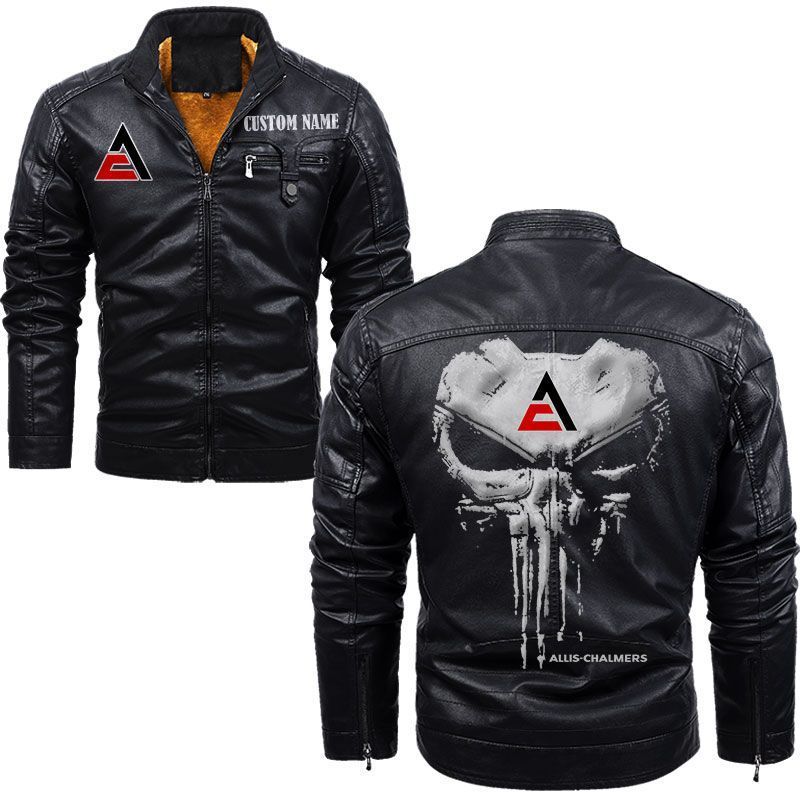 Custom Name Punisher Skull Allis Chalmers Zip Pocket Fleece Leather Jacket