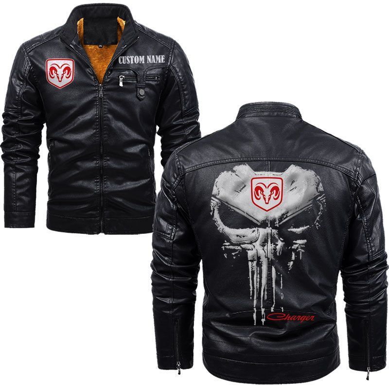 Custom Name Punisher Skull Dodge Zip Pocket Fleece Leather Jacket