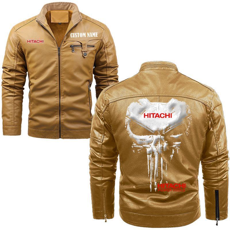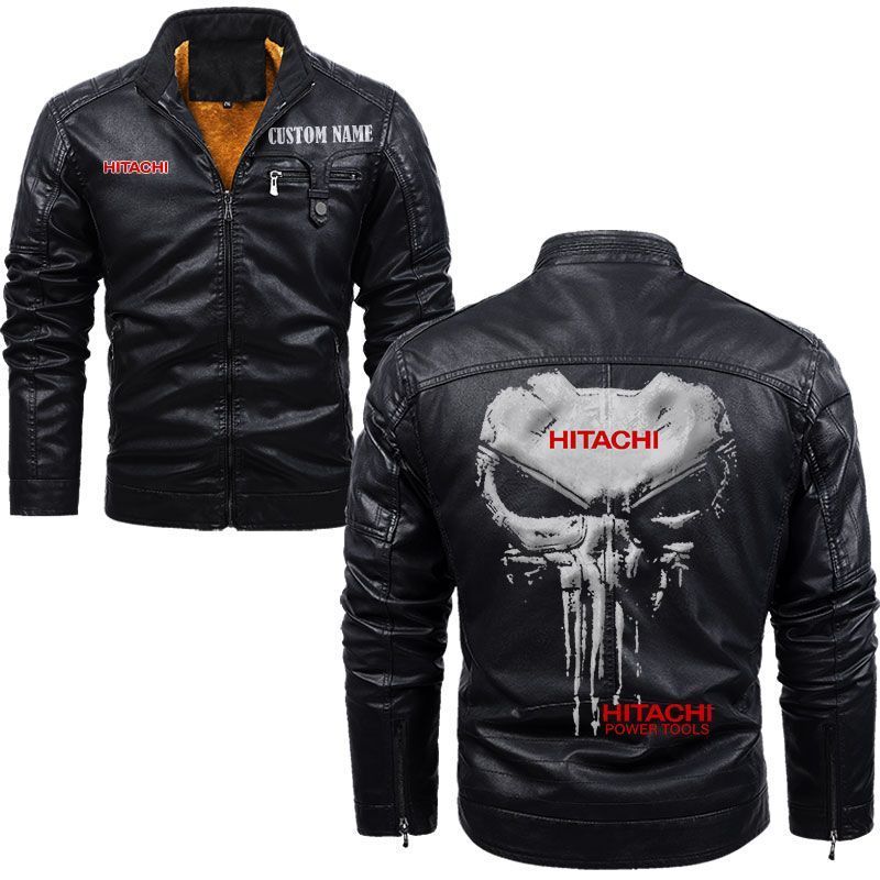 Custom Name Punisher Skull Hitachi Zip Pocket Fleece Leather Jacket
