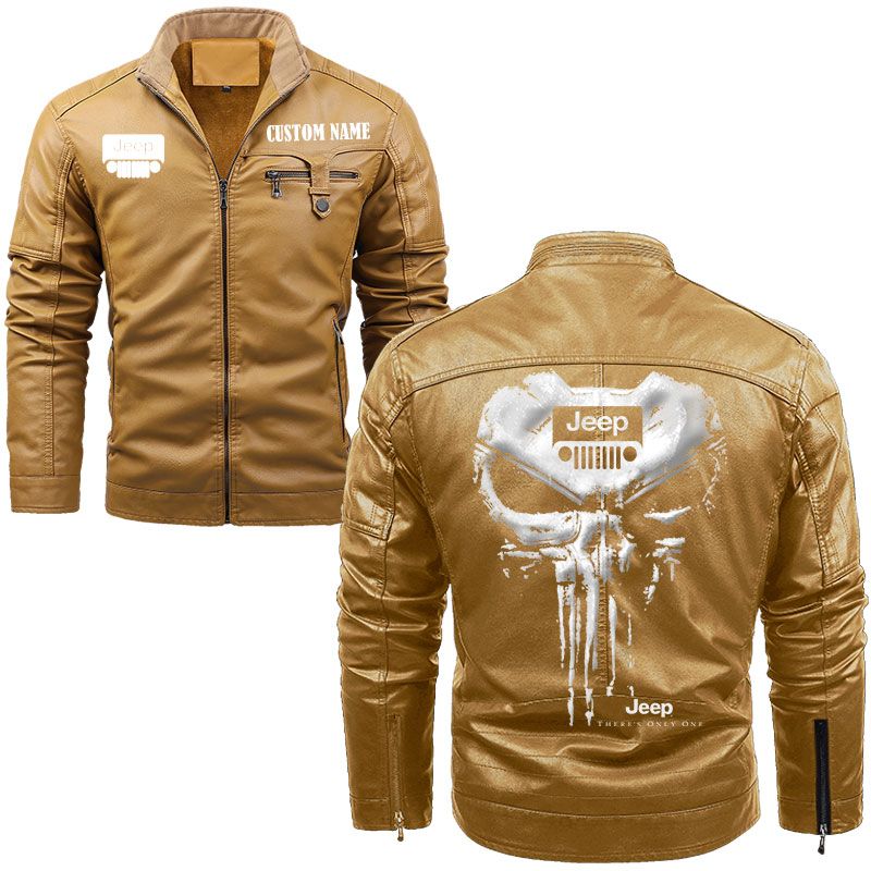 Custom Name Punisher Skull Jeep wrangler Zip Pocket Fleece Leather Jacket