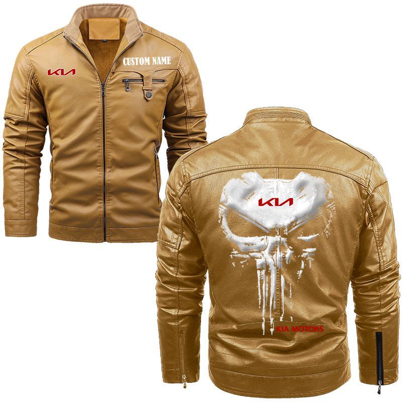 Custom Name Punisher Skull Kia Zip Pocket Fleece Leather Jacket