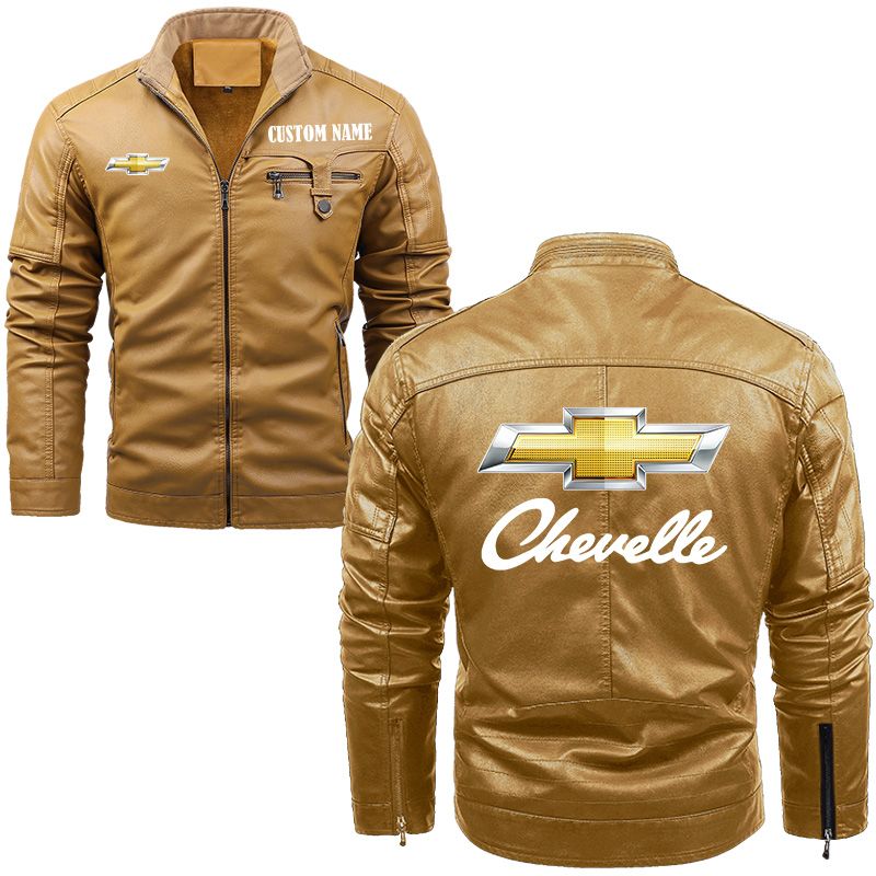 Chevrolet Chevelle Zip Pocket Fleece Leather Jacket