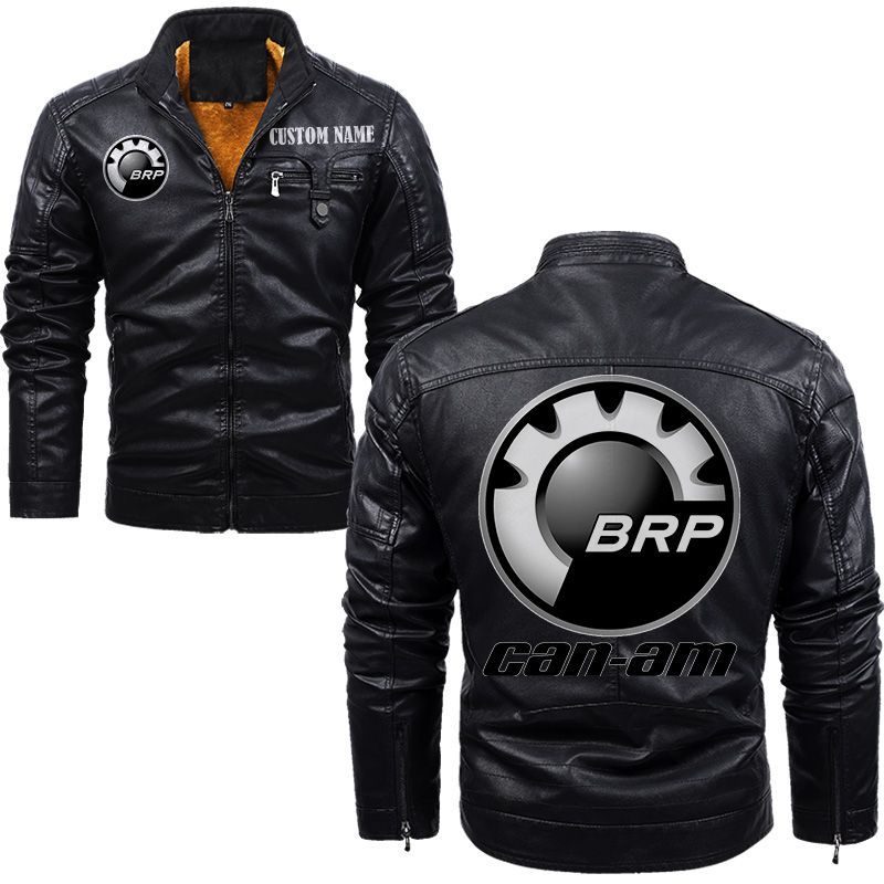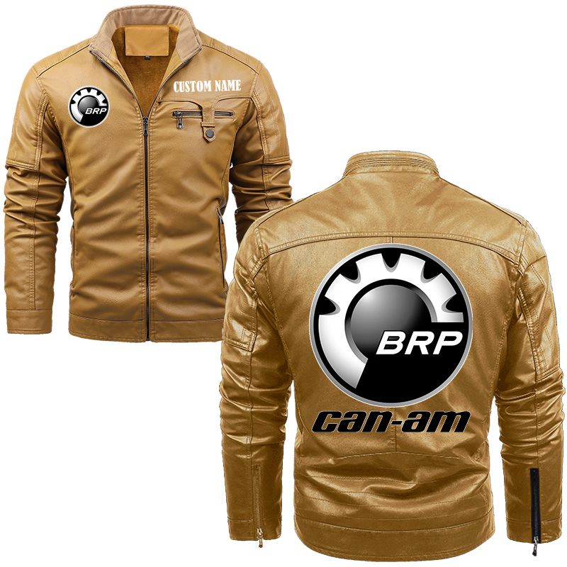 Can Am motorcycles Zip Pocket Fleece Leather Jacket