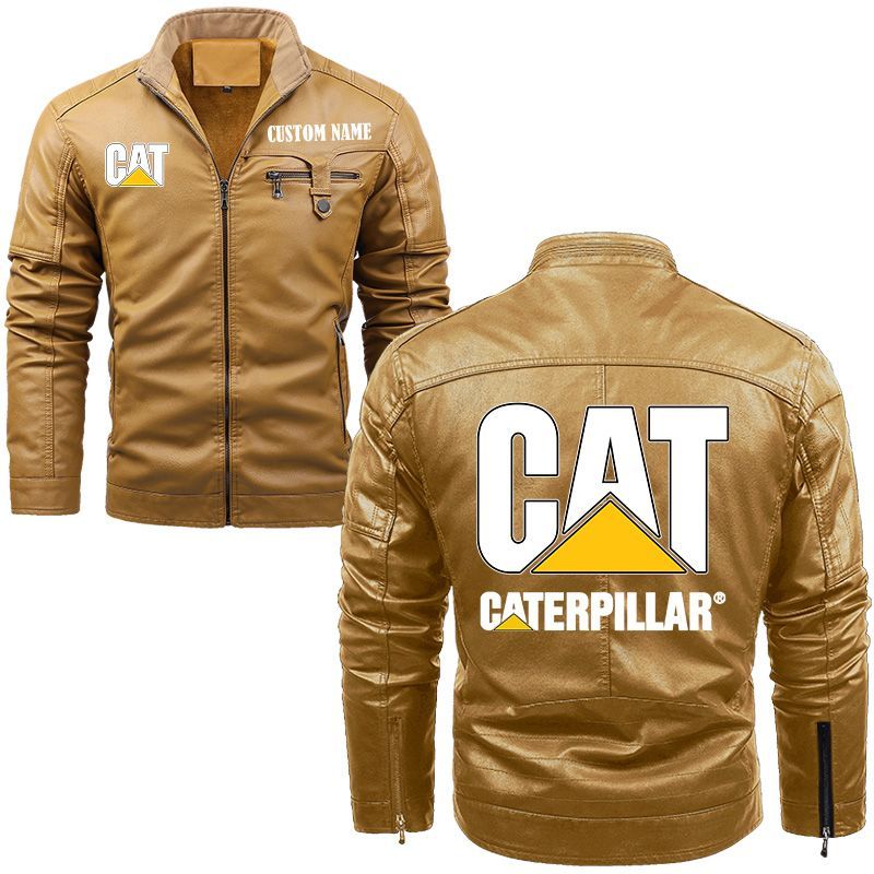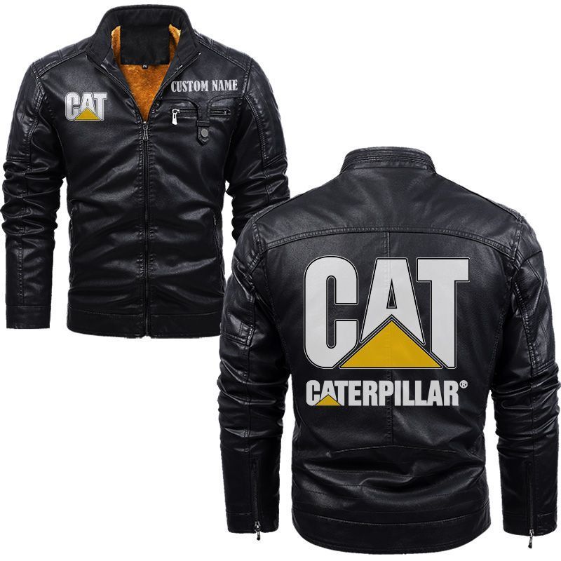 Caterpillar Inc Zip Pocket Fleece Leather Jacket