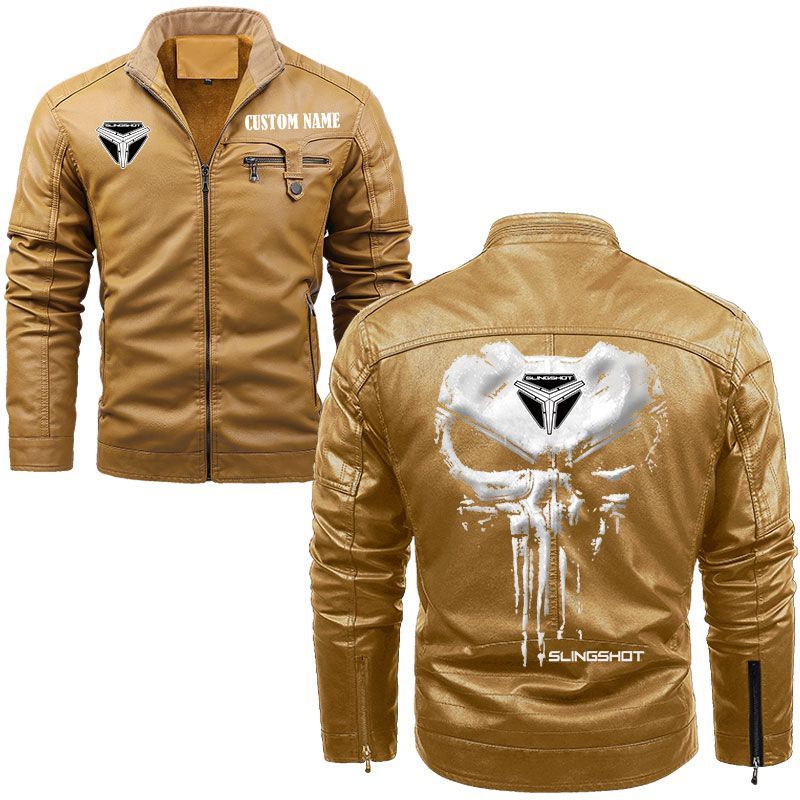 Custom Name Punisher Skull Slingshort Zip Pocket Fleece Leather Jacket