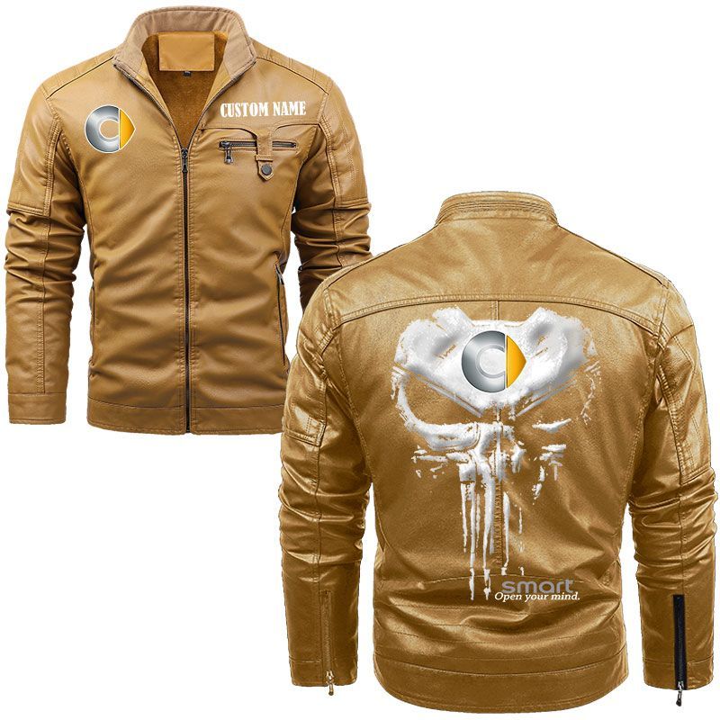 Custom Name Punisher Skull Smart Zip Pocket Fleece Leather Jacket