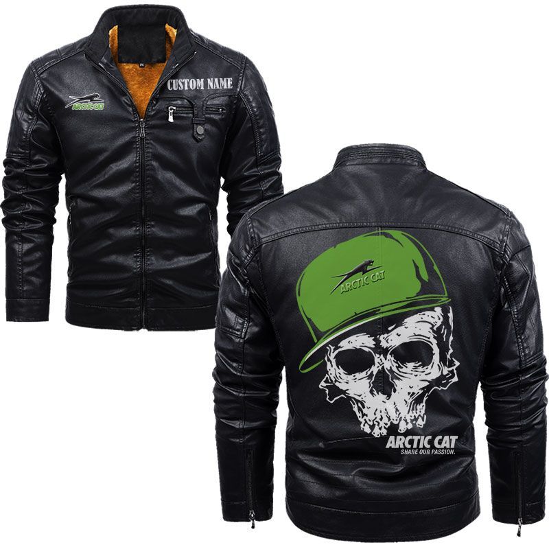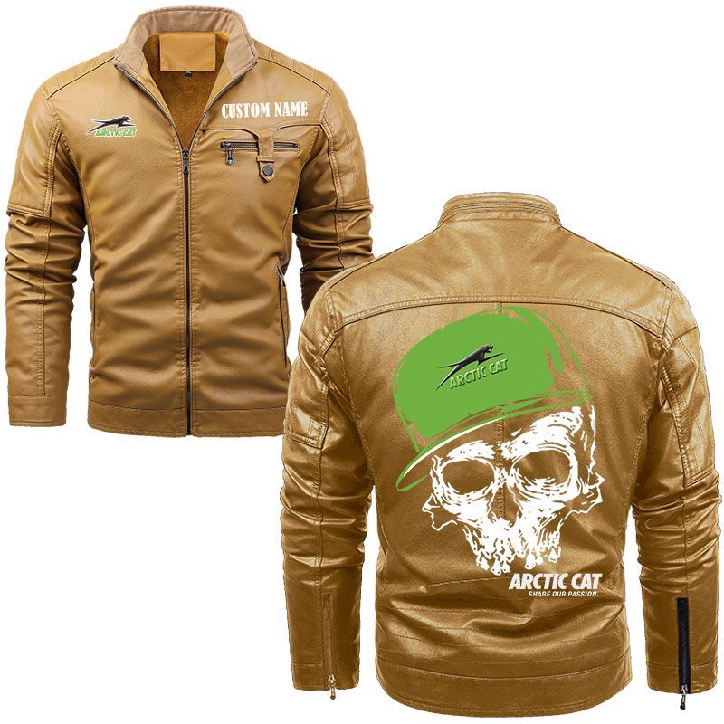 Custom Name Skull Design Arctic cat Zip Pocket Fleece Leather Jacket
