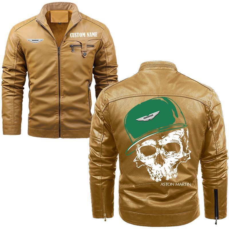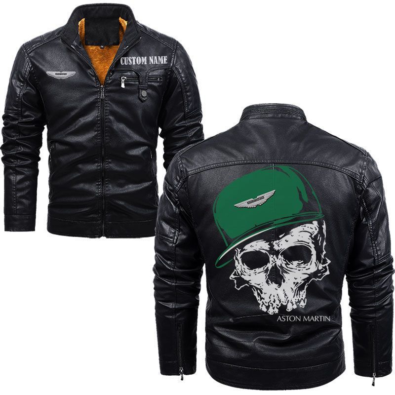 Custom Name Skull Design Aston Martin Zip Pocket Fleece Leather Jacket