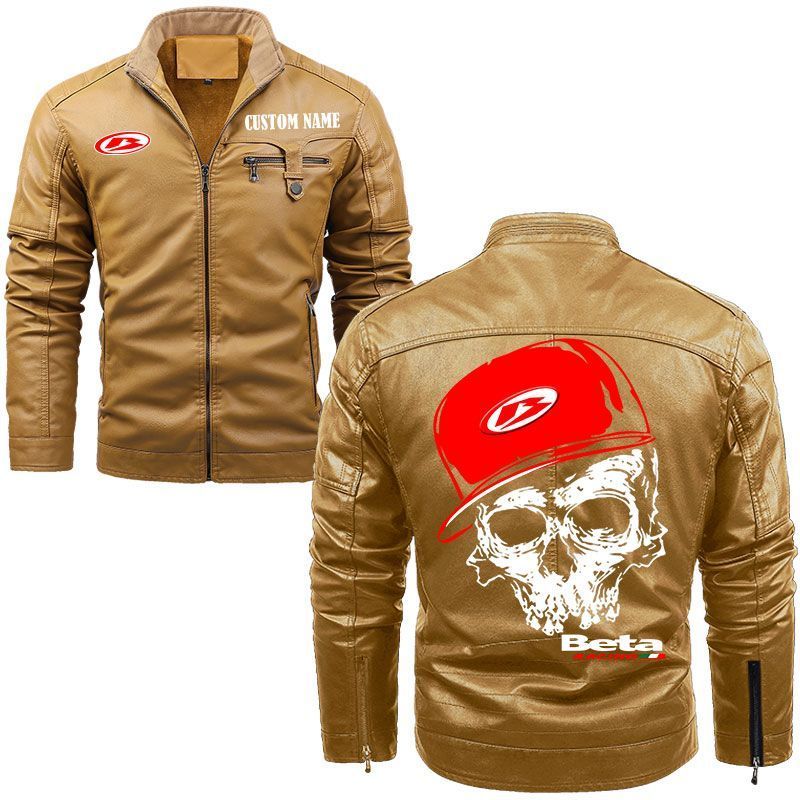 Custom Name Skull Design Beta Zip Pocket Fleece Leather Jacket