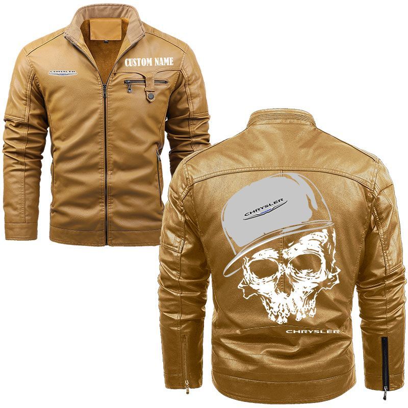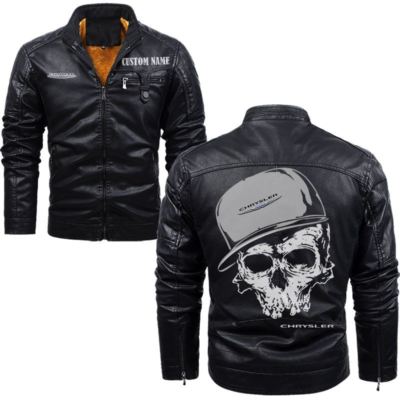 Custom Name Skull Design Chrysler Zip Pocket Fleece Leather Jacket