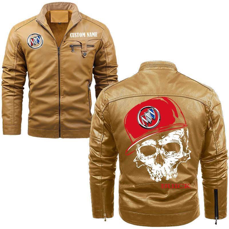 Custom Name Skull Design Buick Zip Pocket Fleece Leather Jacket